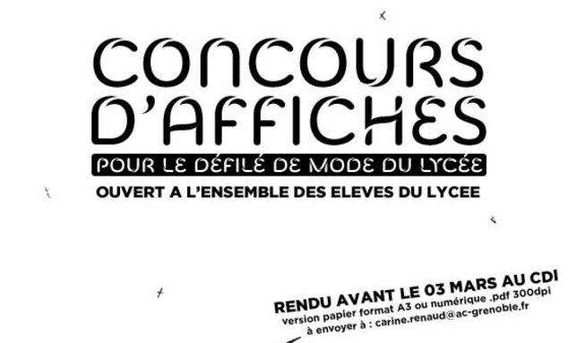 Par YVAN TEYPAZ, publié le mardi 10 février 2026 08:53 - Mis à jour le mardi 10 février 2026 08:53Participez à la création de l’affiche du défilé Mode & Spectacle ! Tous les élèves sont invités à proposer leur design. Dépôt des projets au CDI avant le 03 mars 2026. -