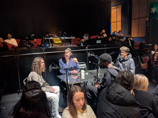 Après le concert, Steve Ibrahim a donc pris place au milieu des élèves présents et face aux responsables de Radio Semnoz qui géraient l’enregistrement de l’interview.